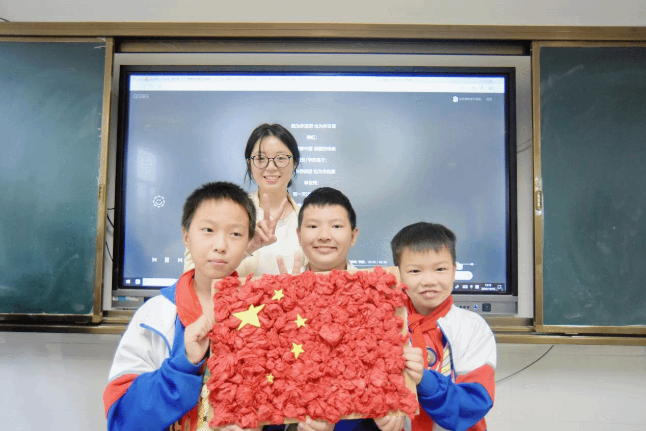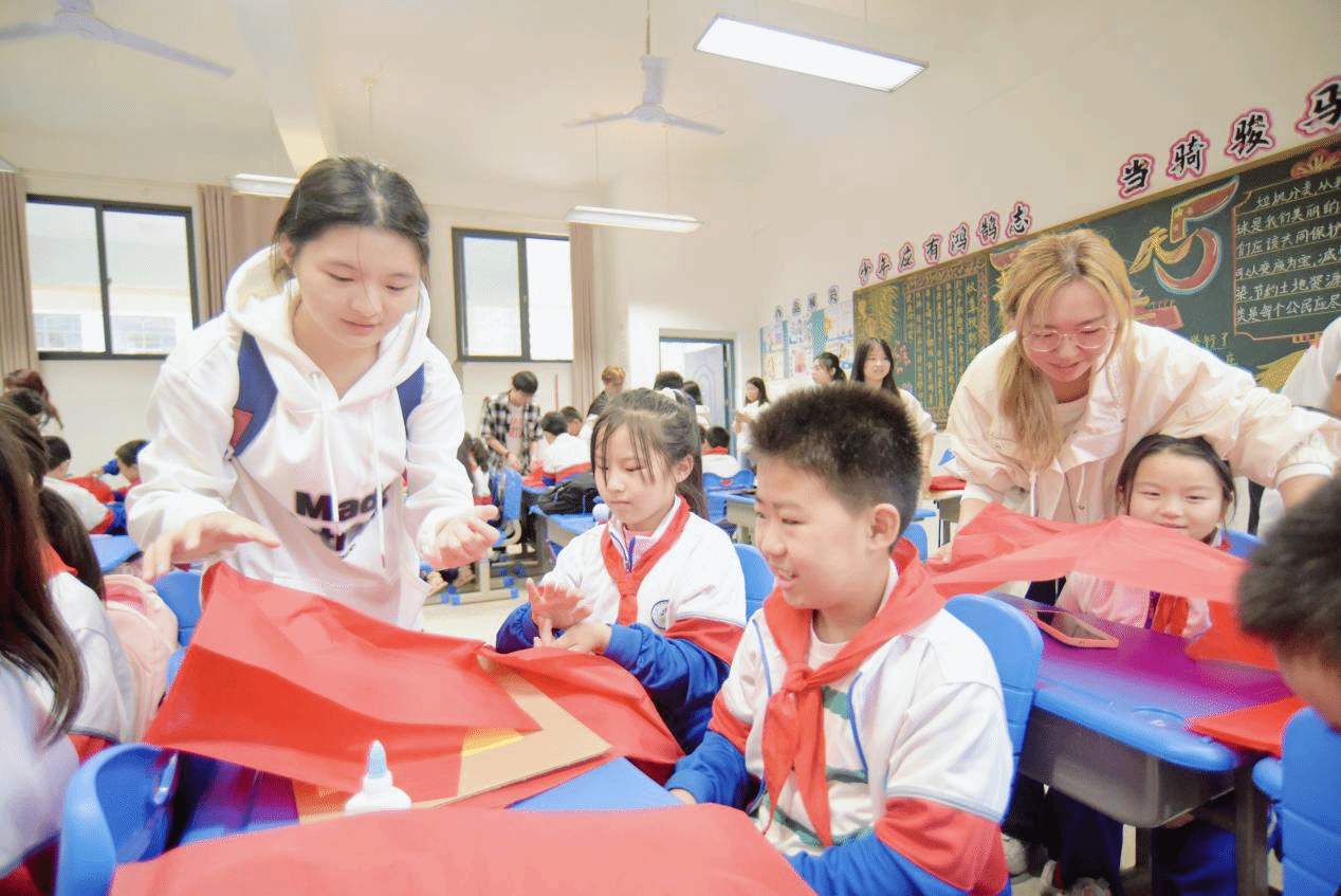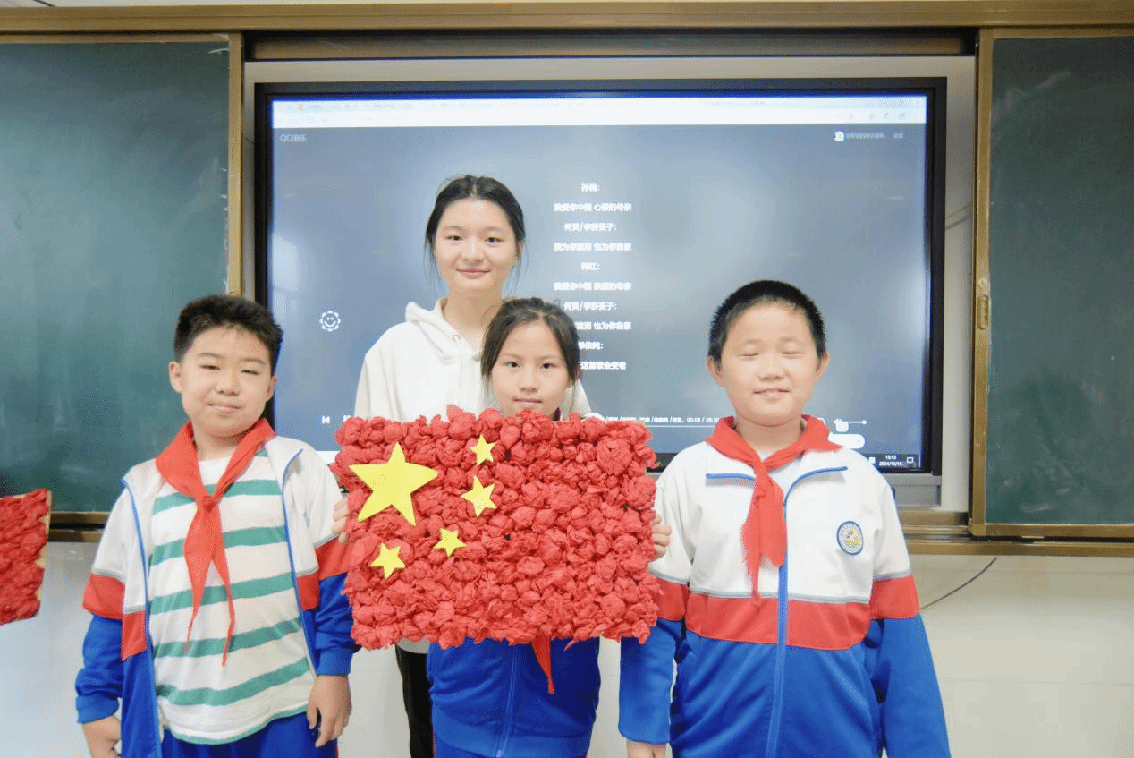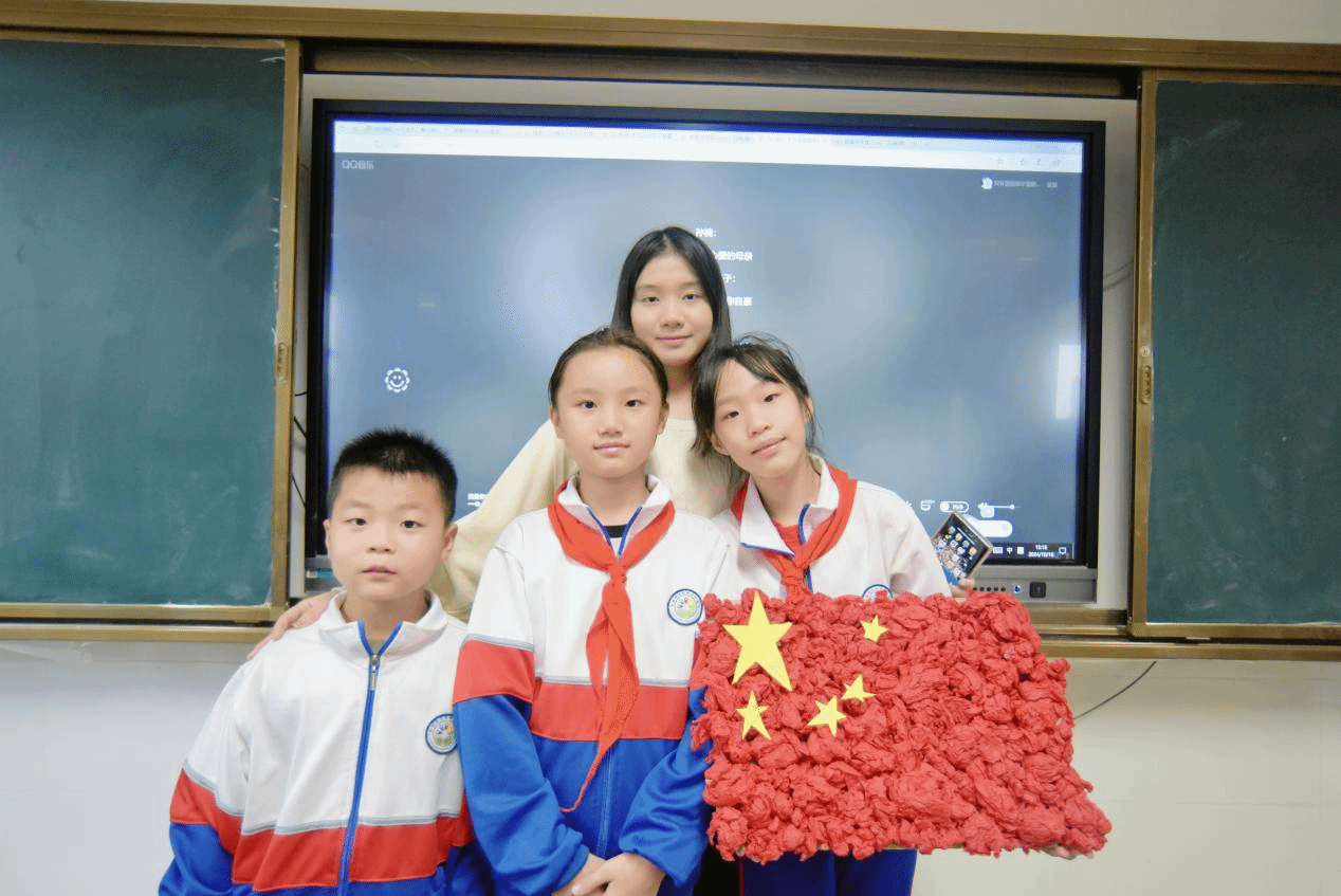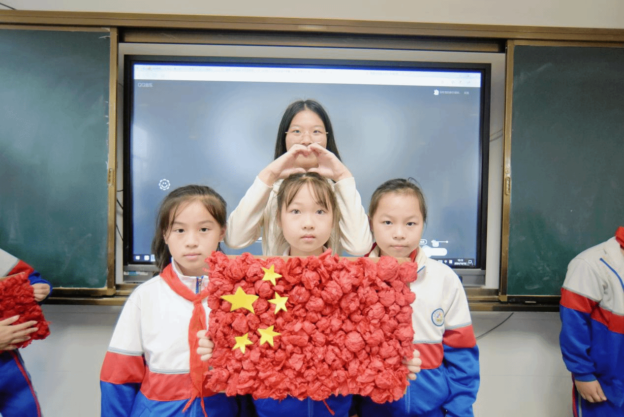 最后,全体学员带领小朋友们围绕国庆主题制作手工作品。从简单纸板到精美国旗,孩子们在创造中感受到了民族荣誉感。这不仅是一次简单的手工制作,更是一次心灵与心灵的对话,一次对祖国深情的告白。当他们高举着自己的作品,与我院世纪英才班学员并肩合影时,在镜头定格的那一瞬,孩子们的笑脸与手中的红旗交相辉映,构成了一幅最美的画卷,那是对祖国母亲最为真挚的礼赞。