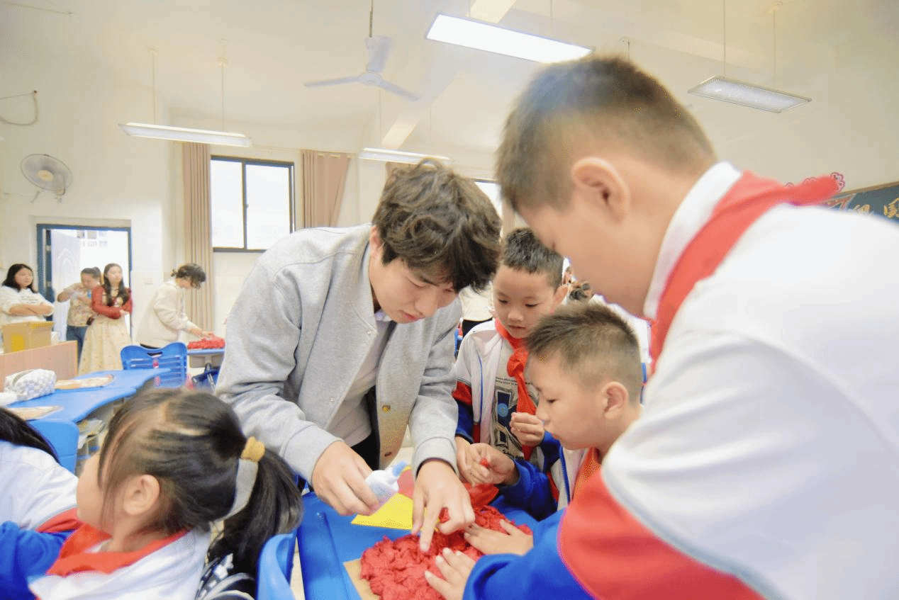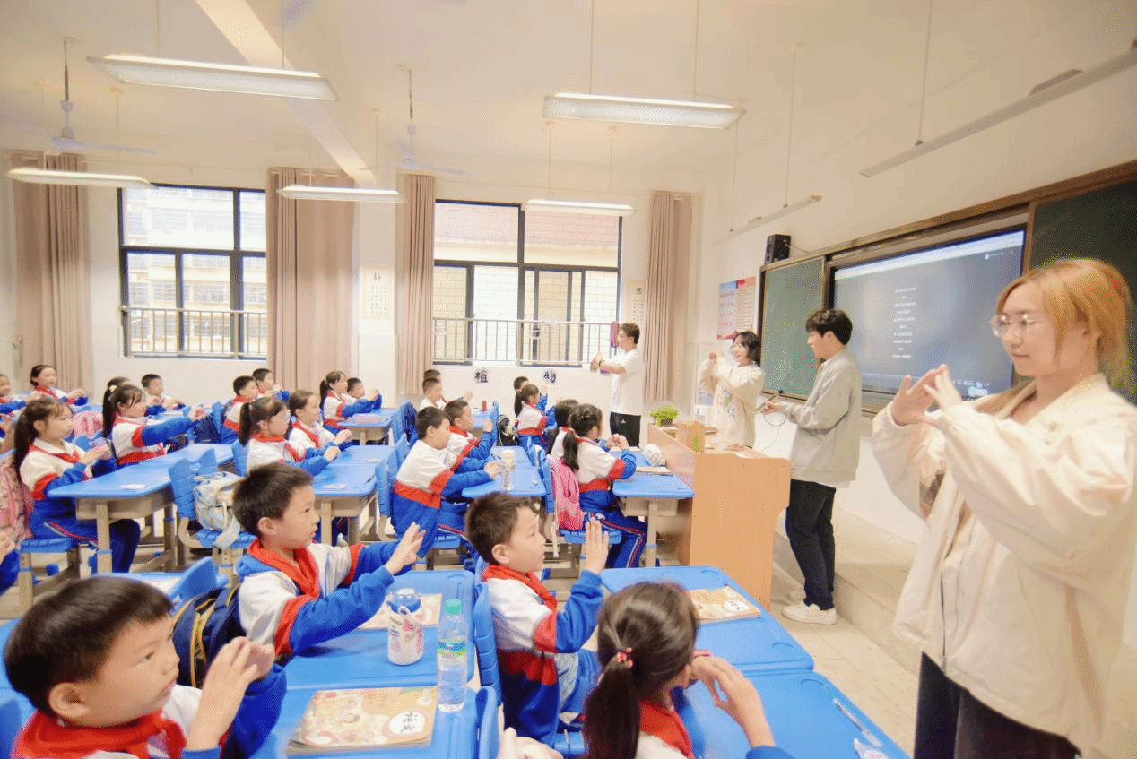紧接着,我院世纪英才班学员带领小朋友们学习《我爱你中国》手势舞。每一个精准的动作,每一次认真的模仿,都饱含着对祖国母亲的深情厚谊。这不仅是一次简单的手势舞教学,更是在孩子们纯净的心田上播撒下一粒粒红色的种子,让祖国的形象在他们小小的世界里愈发清晰、生动,留下不可磨灭的印记。