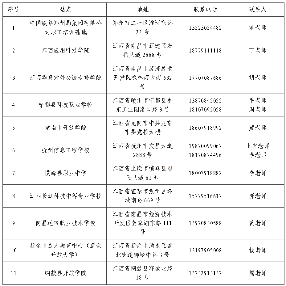 注:未选择校外教学点的考生,划归校本部直接管理(校本部联系电话:0791-87045196)。