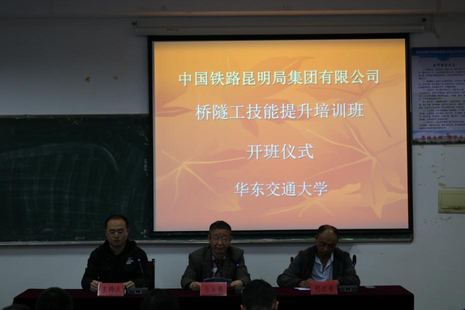 4月12日,中国铁路昆明局集团有限公司桥隧工技能提升培训班顺利在华东交通大学继续教育学院开班。华东交通大学继续教育学院副院长马玉喜,华东交通大学继续教育学院培训与实践教学管理科科长熊锐,曲靖工务段副主任代红俊出席开班典礼。本期培训班为期一周,共39名学员参加。