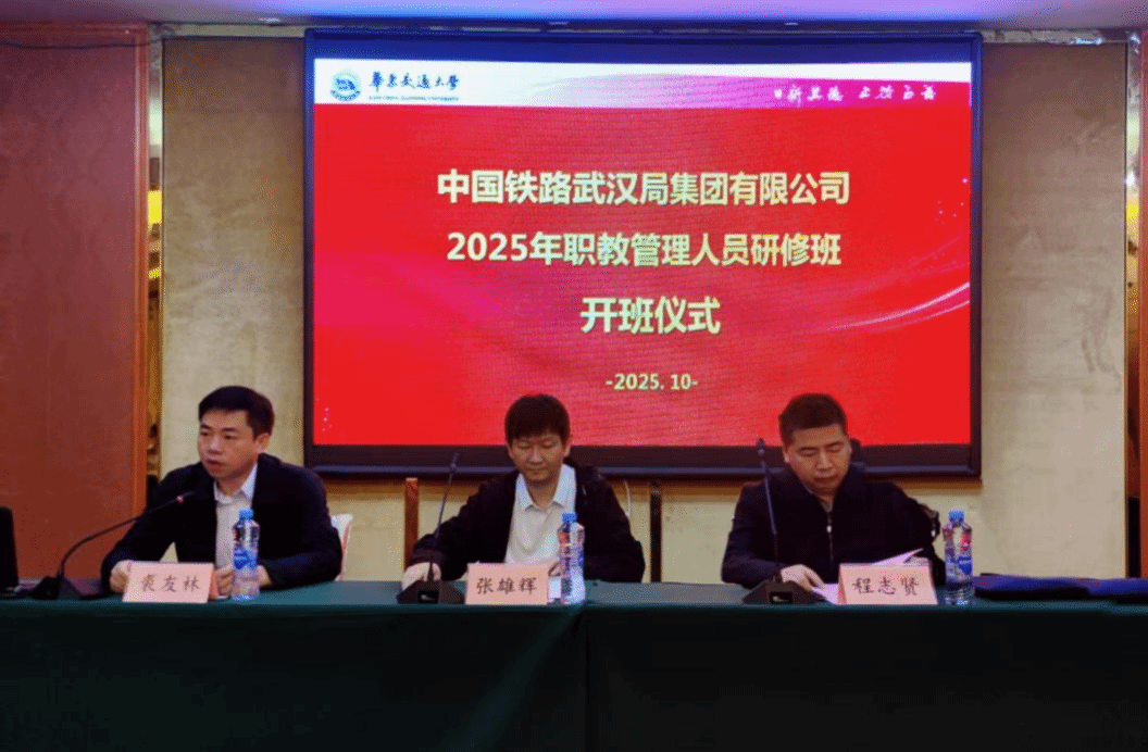 10月20日,中国铁路武汉局集团有限公司2025年职教管理人员研修班开班仪式在华东交通大学南区专家楼举行。来自武汉局各站段的38名职教骨干将在此开展为期5天的集中研学。