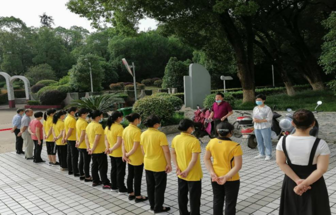在疫情防控期间,公寓管理科负责人盛松奇会定期给防疫人员开早会、定期研讨和总结疫情防控工作的经验,时时拉紧防疫这根线。
