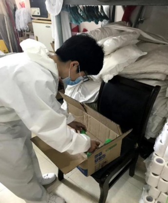 在“隔离师生”离开后,工作人员要做好房间清理、更换卧具与消杀、送餐、消杀、垃圾清运等工作。至今,回收隔离人员产生的垃圾高达5000余次。