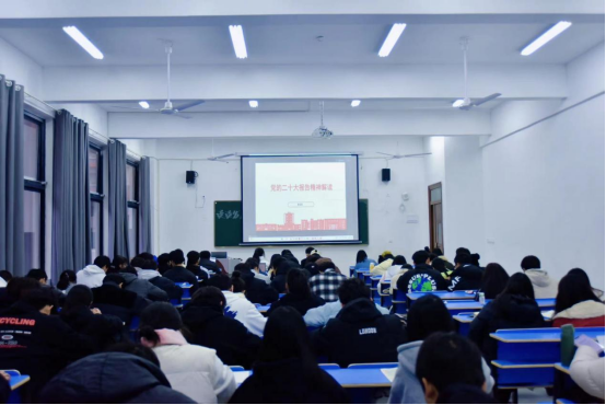 常玉凤号召,同学们必须要将党的二十大的学习落脚在学思践悟上,积极做学习的先锋,主动做宣讲的能手,自觉做自律的表率,创造出无愧于人生、无愧于社会、无愧于时代的新业绩。