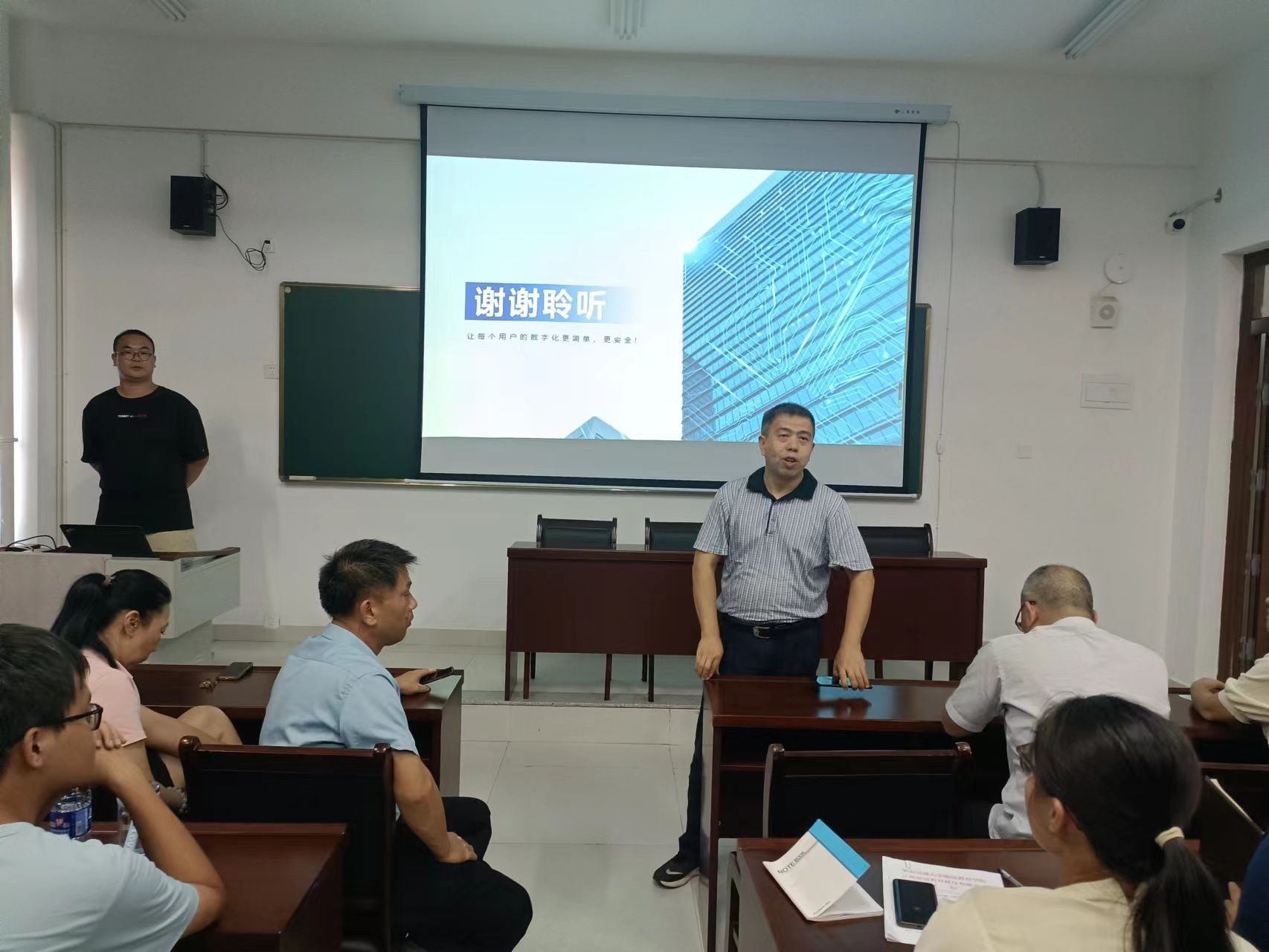为切实提高进贤教学点网络安全防护能力和广大师生网络安全意识,9月12日下午,在国家网络安全宣传周校园日当天,继续教育学院“火车头”党建提升工程暨“党员干部履职能力提升培训”第六次活动如期举行。本次系列活动邀请江西福盛教育科技有限公司网络实训中心主任王春波作“网络安全意识宣传”讲座,会议由继续教育学院党委书记吴效葵主持。