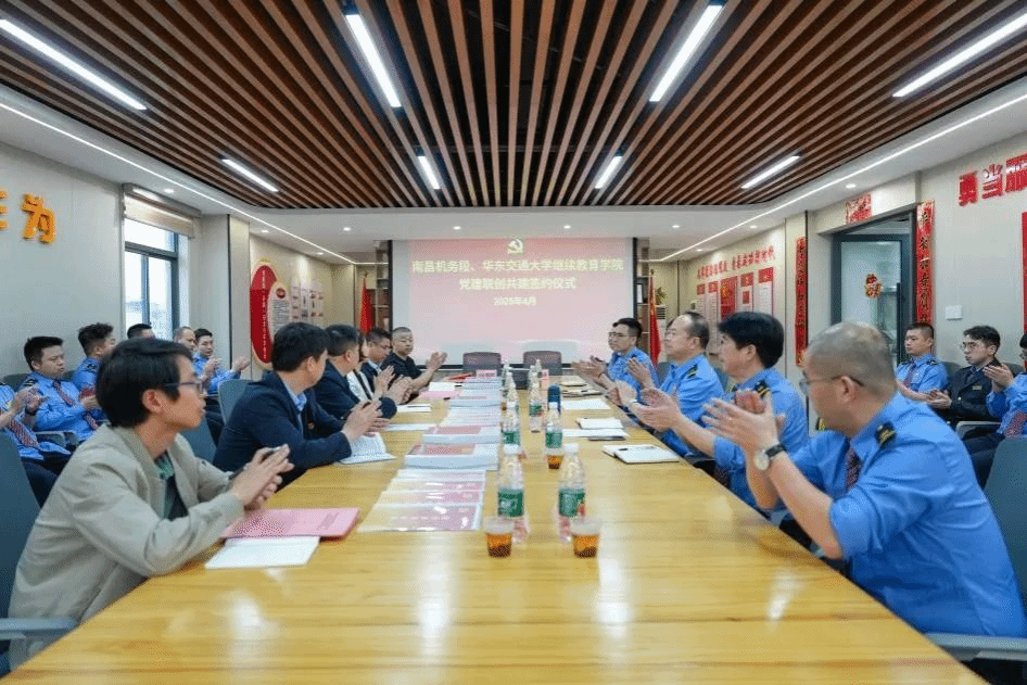 为深入学习贯彻习近平新时代中国特色社会主义思想,推进基层党组织建设“强基提质”工程,4月16日下午,我院与南昌铁路局南昌机务段(以下简称南昌机务段)举行党建共建签约仪式。出席仪式的有学院党委书记程志贤、院长田艳霞、党委副书记陈小建、副院长裘友林及相关负责人,南昌机务段党委书记杨伟宏、党委副书记胡斌、支部书记、党员代表,共计40余人。