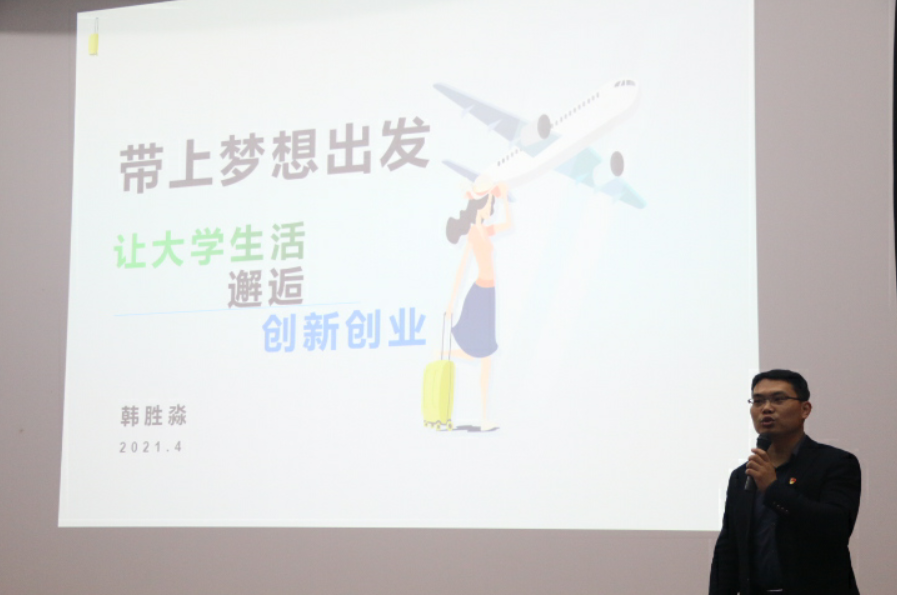 在随后创新创业培训中,校团委创新创业中心韩胜淼老师与台下观众通过互动问答的方式,从“你的梦想”,“你所知道的创新创业”和“梦想与创业能否一路同行”等话题,将梦想-创新-创业三者的关系进行阐述,并列举众多创新创业的成功案例,让在场的同学们对当今创新创业,尤其是大学生的创新创业有了更加深刻的认识。