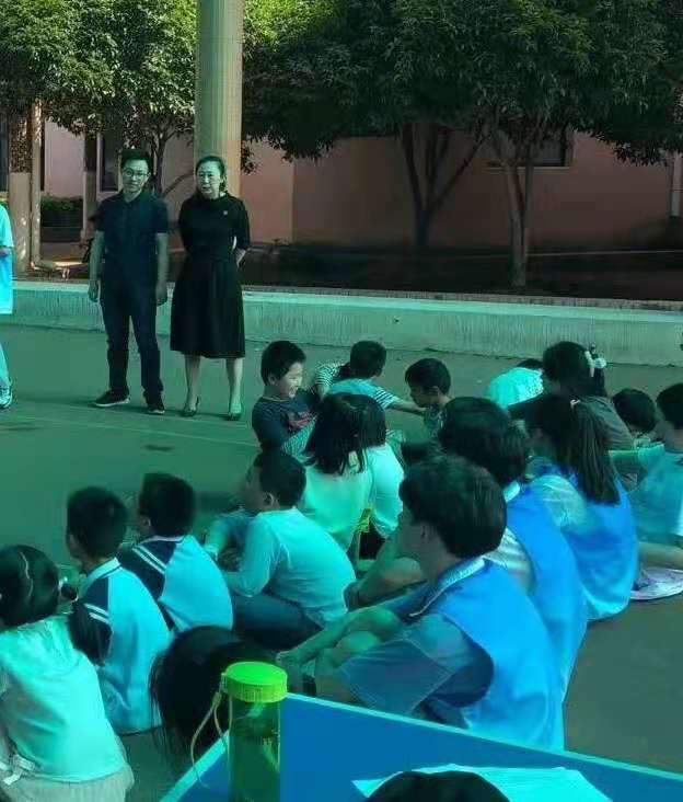 职业教育党支部书记齐文囡老师,宣传委员罗椿老师,对志愿活动进行了细致的询问和工作指导,并分享党史小故事,与志愿者及小朋友互动。