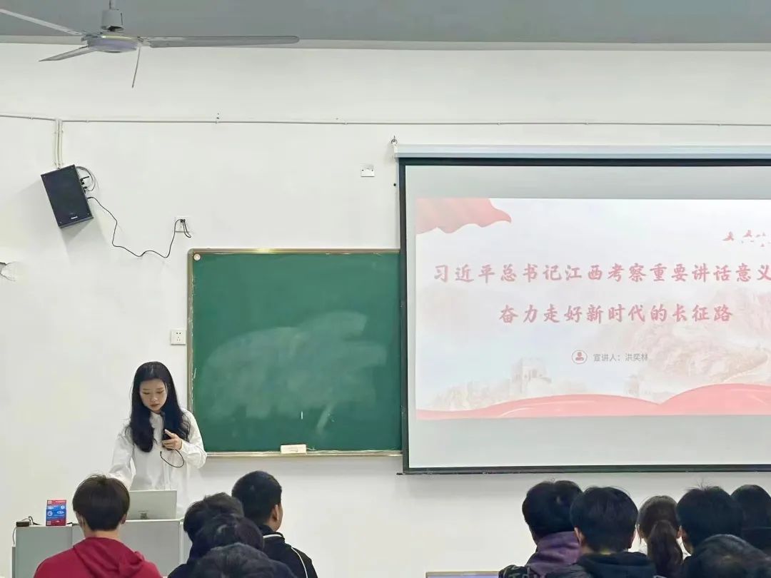 青年讲师团成员洪奕林围绕习近平总书记再次考察江西的重大意义,提出的新的战略定位、任务要求以及牢记习近平总书记殷殷嘱托等四个方面作了全面系统、鲜活生动的阐释,强调切实增强坚定拥护“两个确立”、坚决做到“两个维护”。