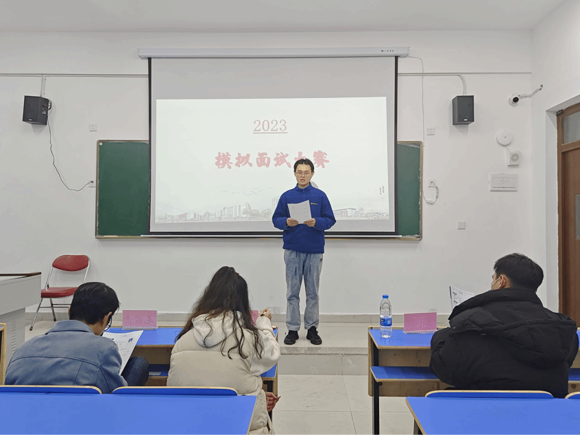 为贯彻落实 2023 届全国普通高校毕业生就业工作第二次会议的相关要求,树立我院学子正确的就业观,明晰个人就业竞争力,掌握简历制作方法和面试技巧,华东交通大学继续教育学院(轨道交通职业技术学院、职业教育学院)于11月29日晚分别在综合楼502和504举办首届“模拟面试大赛”。本次大赛由辅导员毛丽素老师、陈筱玥老师、付佳琪老师、罗隆老师、付凯丰老师,教务科老师罗启轩担任评委。