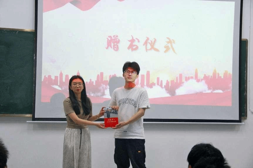 《习近平与大学生朋友们》一二卷明晰着青年成长的大方向、大坐标。宣讲之后,校青年讲师团成员洪奕林将本书赠予团支书,表彰其充分发挥带头作用,鼓舞其带领班级团支部及全班同学不断把为崇高理想奋斗的实践推向前进。