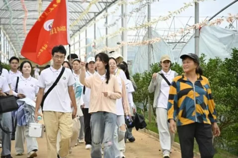 为贯彻落实新时代习近平总书记关于生态文明建设的重要论述,践行绿色发展理念,助力乡村振兴,2024年6月29日,由华东交通大学继续教育学院和外国语学院学生骨干组成的“继非遗,语畲韵”社会实践队走进了农业科技示范基地——军山湖富硒百香果生态园,深入田间地头开展实践活动,开启一场别开生面的农业体验之旅。