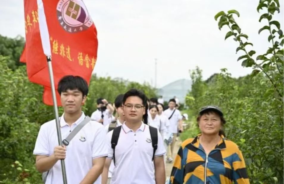撸起袖子加油干,同心共筑振兴梦。为能够切实体悟农耕文化,实践队也深入田间地头,开展了一场别具一格的活动——帮助果农清除杂草。实践队员们分工协作、紧密配合,对杂草分布区域进行清理。在盛夏的田野里,去田间地头“接地气”“沾泥土”,扎下根来快速成长。