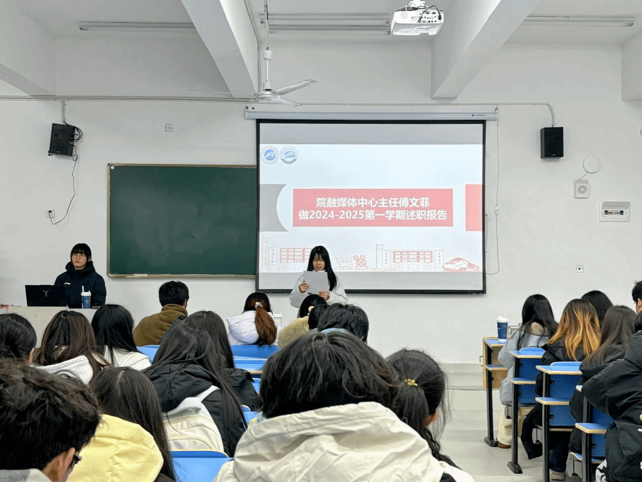 院融媒体中心主任傅文菲衷心感谢全体成员的辛勤付出,强调过去一学期取得的显著成绩得益于团队的凝聚力与创造力。她深入剖析了各部门现状,明确问题所在,并鼓励成员们继续发扬探索创新精神,推动宣传工作迈上新的台阶。