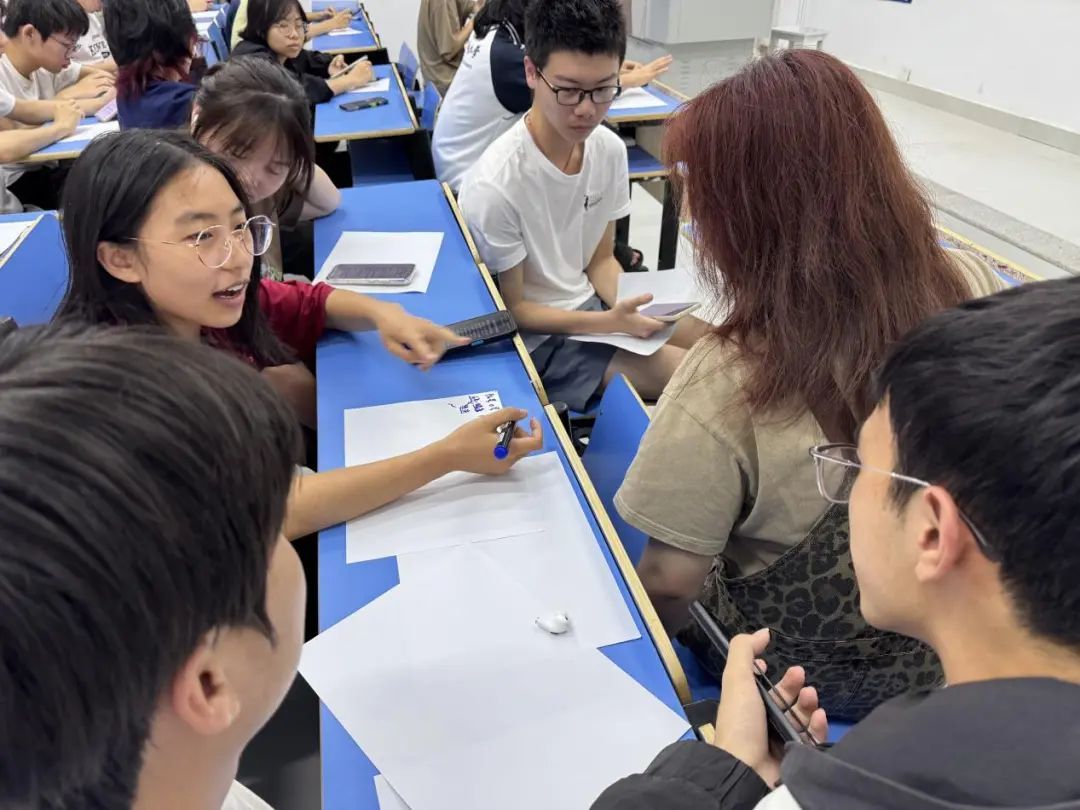 活动伊始,计晓洁让同学们以小组为单位进行“五分钟破冰”,打破彼此之间的陌生感,营造轻松开放的交流氛围。在讲解“向别人介绍自己”的方法时,她强调同学们要将自身优势与创业主题结合,以具体经历为切入点,突显参与培训的目标与价值,帮助同学们掌握高效的自我展示策略。