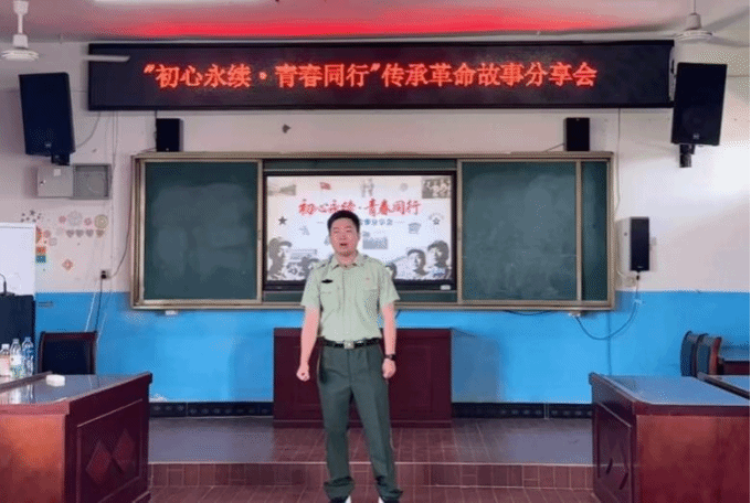 退役军人许逊代表结合部队生活、参战经历及工作岗位,深入浅出地讲述了自己对于五四精神的深刻理解,并带领同学们重温了那段血与火的峥嵘岁月,激发了他们的爱党爱国热情和民族自豪感。他希望同学们能珍惜来之不易的幸福生活,深埋爱国的种子,努力学习好科学文化知识, 胸怀鸿鹄之志,努力成为建设国家的栋梁之才。