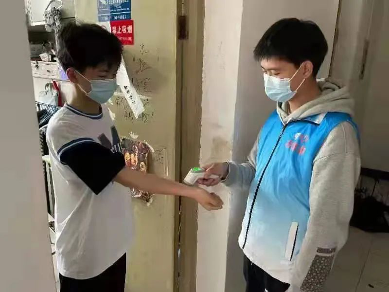 志愿者为同学们测量体温