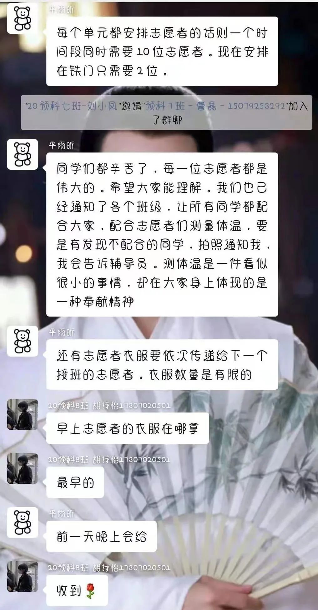 4月3日晚,我院接校团委紧急通知,需要招募在各个楼栋门口测量体温的志愿者。通知发出,我院学生骨干、团员青年踊跃报名,认真投入志愿服务工作。截止到现在,共有205名志愿者参加到本次“体温志愿者检测行动”的志愿服务中。
