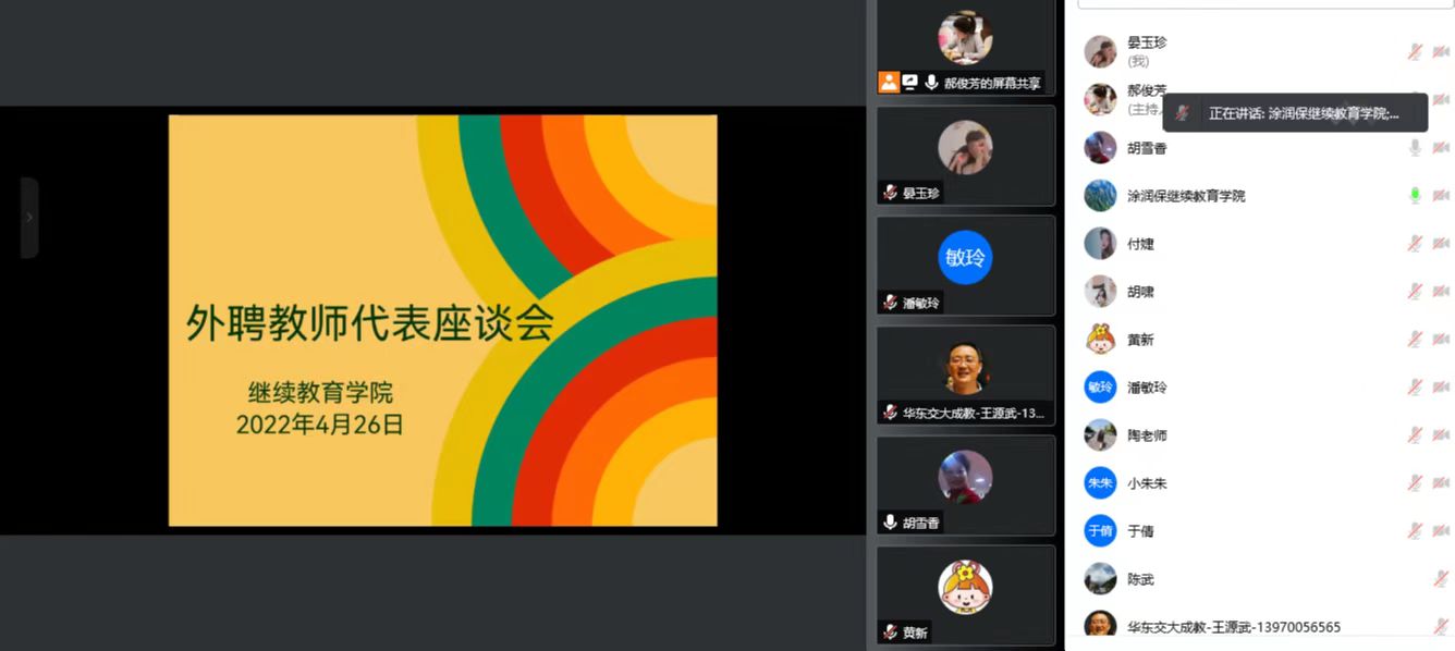 为了落实立德树人的根本任务,提高学院教学质量,抓好学院教学的过程管理,为了进一步规范和管理外聘教师的教学过程,落实巡视整改关于“外聘教师职业认同感少”的重要举措,了解外聘教师的教学动态,学院于2022年4月26日召开了外聘教师代表座谈会,广泛征集外聘教师对学院发展的意见和建议,倾听外聘教师的心声。