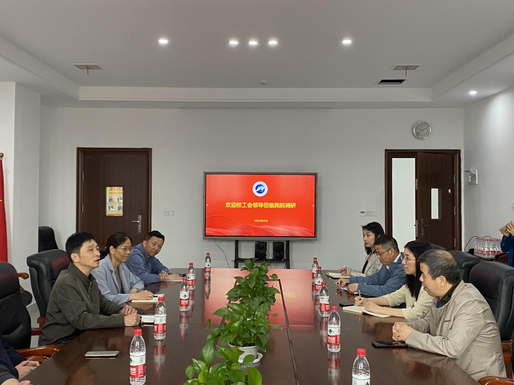 2023年5月11日上午,我校总工会主席吴志峰,离退处书记陈青平,副主席曹文、周桃英一行莅临我院进行调研指导并开展座谈会。我院党委书记吴效葵,副院长王源武、曹婷,院工会主席肖和平及工会委员潘永泉、黄雍参加此次座谈会。会议由吴效葵主持。