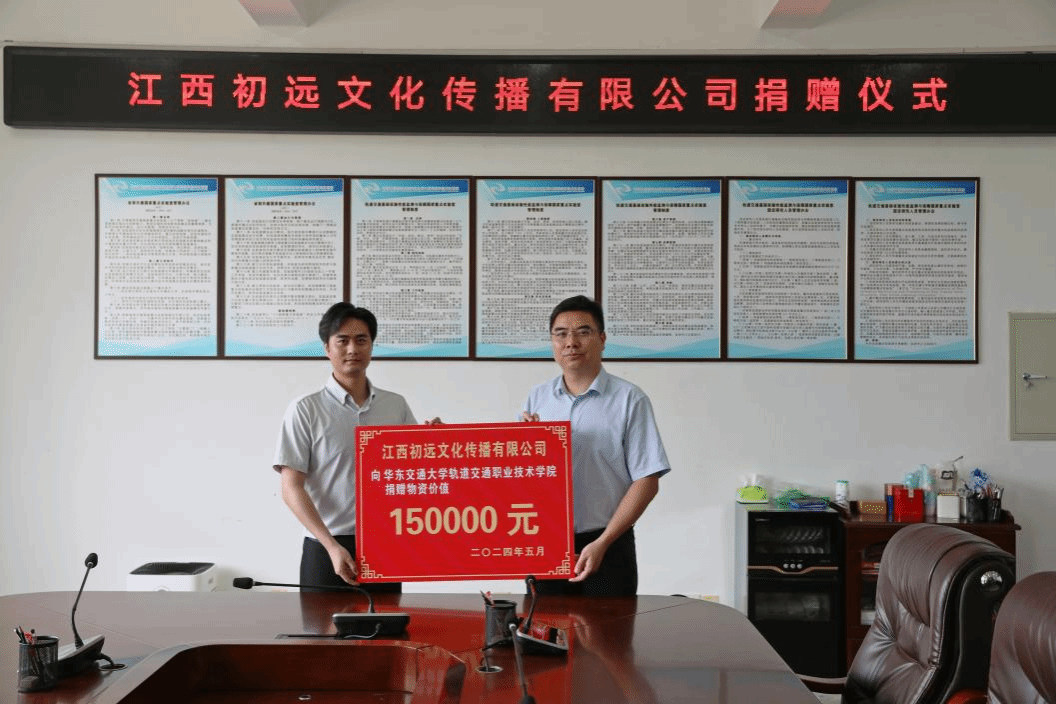 为表达对母校以及学院的牵挂和感恩之情,5月11日,优秀校友徐建路代表江西初远文化有限公司(以下简称:江西初远公司)与我院举行校友捐赠仪式,向学院捐赠15万元学生活动物资。轨道交通职业技术学院党委副书记陈小建、校教育发展基金会基金管理科科长杨亚菲出席,学院辅导员代表和学生代表参加。
