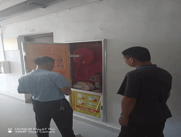 接着检查组先后来到学生宿舍和校园内食堂进行拉网式排查。在学生宿舍,检查组对内部消防设施、电器设备、疏散通道等进行了逐一检查。其中检查了消防器材的配备完好情况,并测试了消防报警系统的正常运行;在食堂,检查了各个燃气设备、电器线路是否拉闸关闭等情况,以确保暑期消防安全。