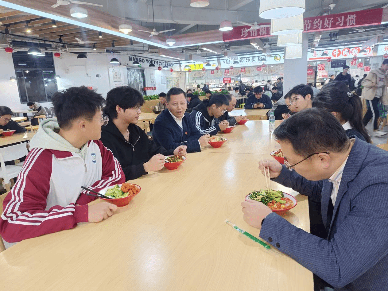 班会结束之后,黄校长深入学生宿舍,并与同学们共进晚餐,关心询问同学们的学习和生活情况,鼓励大家多锻炼身体,提高身体素质。