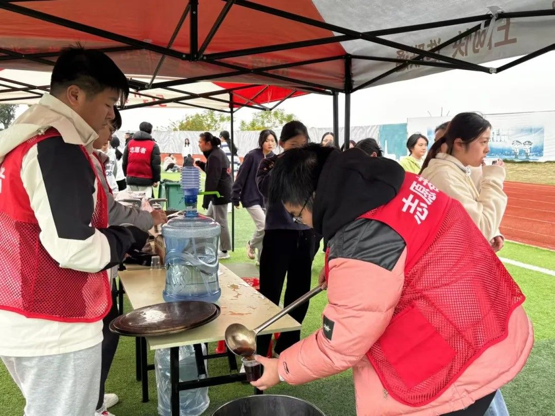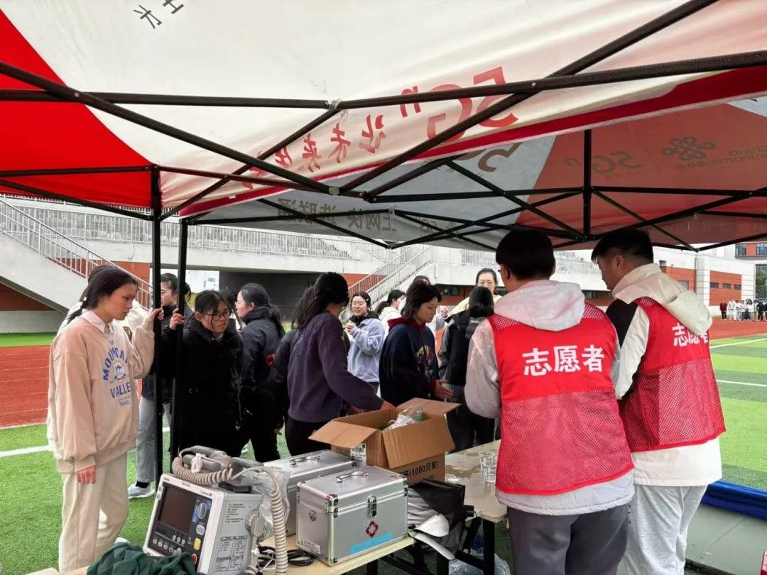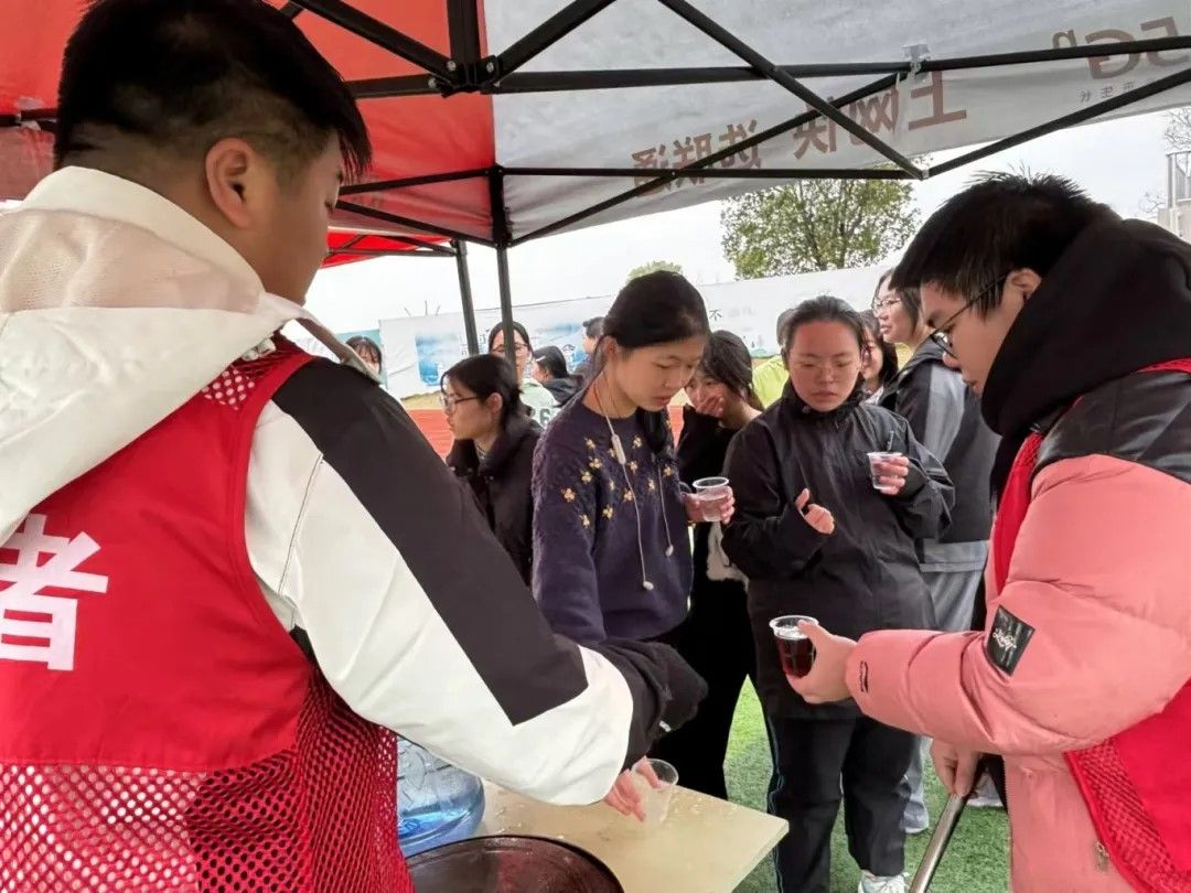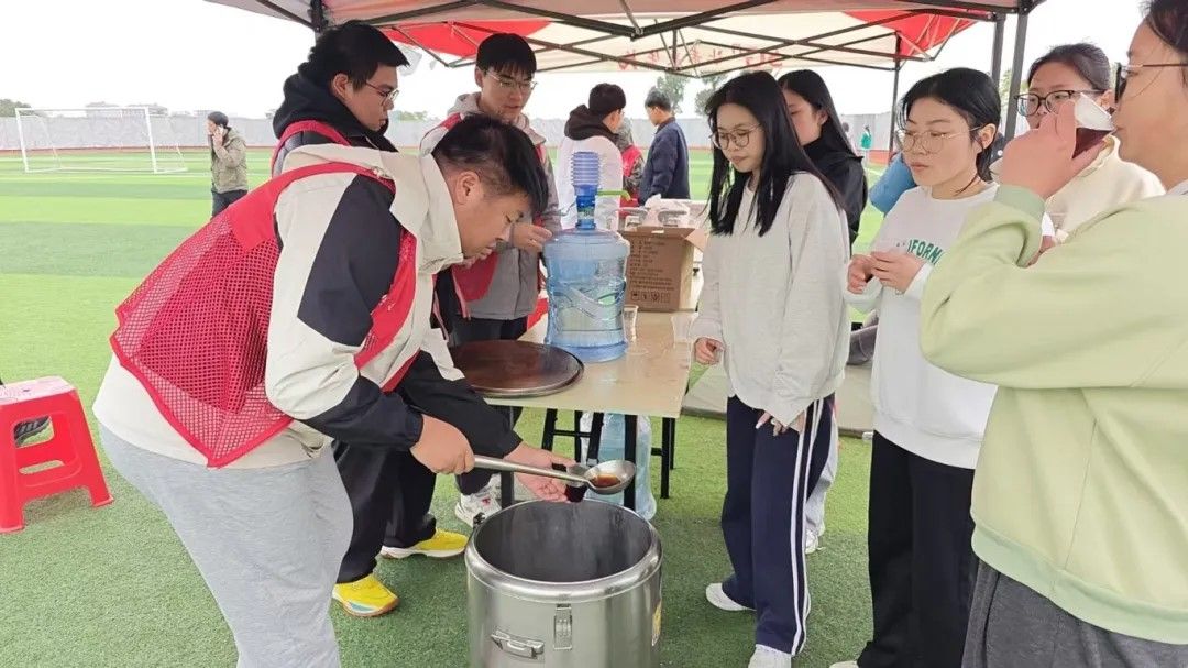 本次体质测试项目包括女生800米跑,男生1000米跑,男女50m跑,立定跳远,引体向上等。为确保体质健康测试的安全性与高效性,学院提前进行了详尽的规划部署,专门设立了医疗应急服务站,配备了急救箱、AED除颤器、担架等医疗设备、物资,还有医护人员和120急救车组全天候在岗待命,为应对可能的突发状况提供了坚实的保障。鉴于冬季气温较低,学院还特别为每位参测学生准备了红糖姜茶,这一举措不仅有效缓解了寒冷带来的不适,更传递了学院对学生健康的深切关怀。