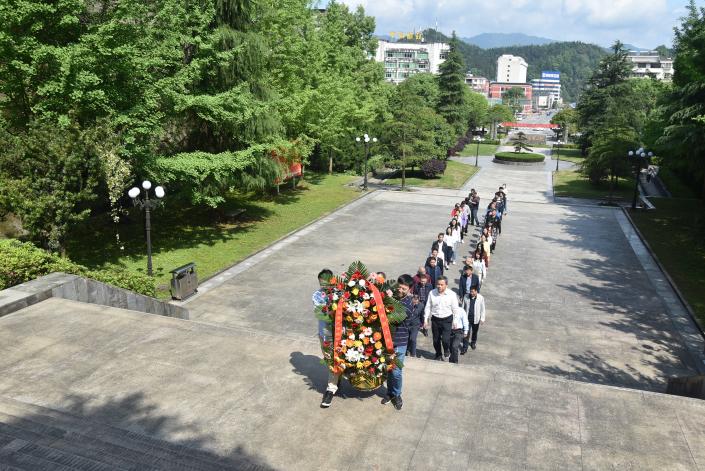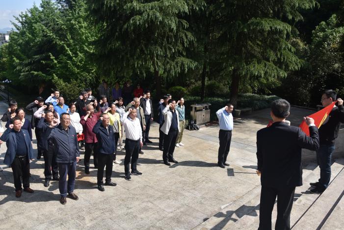 在湘鄂赣革命烈士陵园,全体党员来到革命烈士纪念碑前敬献花篮,我院党委书记胡桃元缓步上前,认真整理花篮上的绶带。随后,党员们整齐列队向革命先烈默哀1分钟,并由我院党委副书记邱伟伟带领全体党员在革命烈士墓前面向党旗庄严宣誓,重温入党誓词。