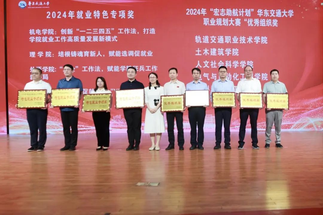 5月14日,在华东交通大学就业工作总结表彰推进会暨“宏志助航计划”职业规划大赛优秀作品展示上,我院荣获2024年“宏志助航计划”华东交通大学职业规划大赛“优秀组织奖”,我院就业干事付佳琪荣获2024年毕业生就业工作“先进个人”称号,特此喜报!