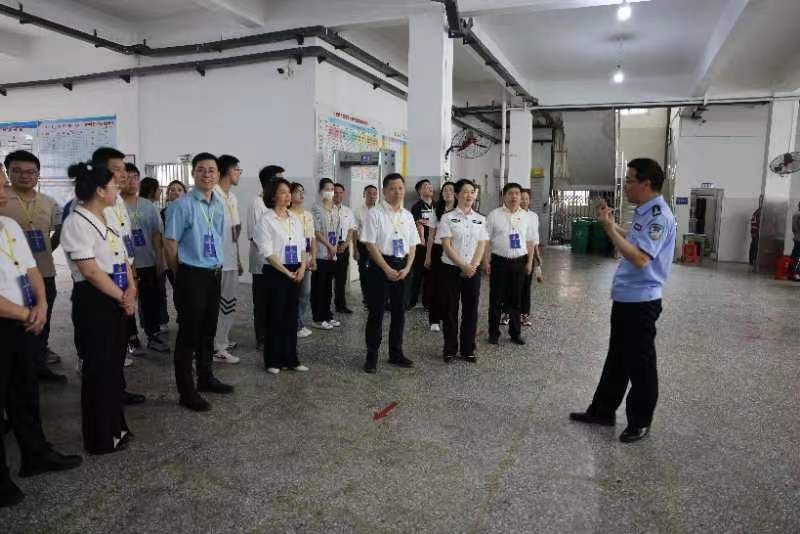 灰墙高耸,重门深锁,沉静肃穆的氛围扑面而来。在狱警的引导和讲解下,学院师生党员先后参观了服刑人员教育日活动、服刑人员监舍、劳动习艺车间、服刑人员食堂、服刑人员文化教学和职业技能教学等场地。通过狱警讲解和现场观看,师生不仅身临其境,而且“心”临其境,“沉浸式”体验这堂深刻又直观的“警示教育课”。
