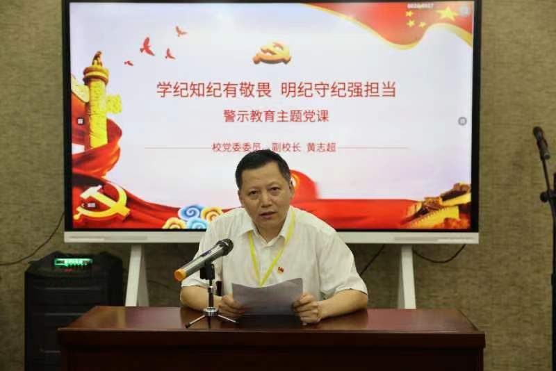 最后,黄志超给全体师生党员上了题为“学纪知纪有敬畏, 明纪守纪强担当”警示教育微党课。他指出,党纪学习教育是加强党的纪律建设、推动全面从严治党向纵深发展的重要举措,对引导广大党员、干部学纪、知纪、明纪、守纪具有极为重要的意义。