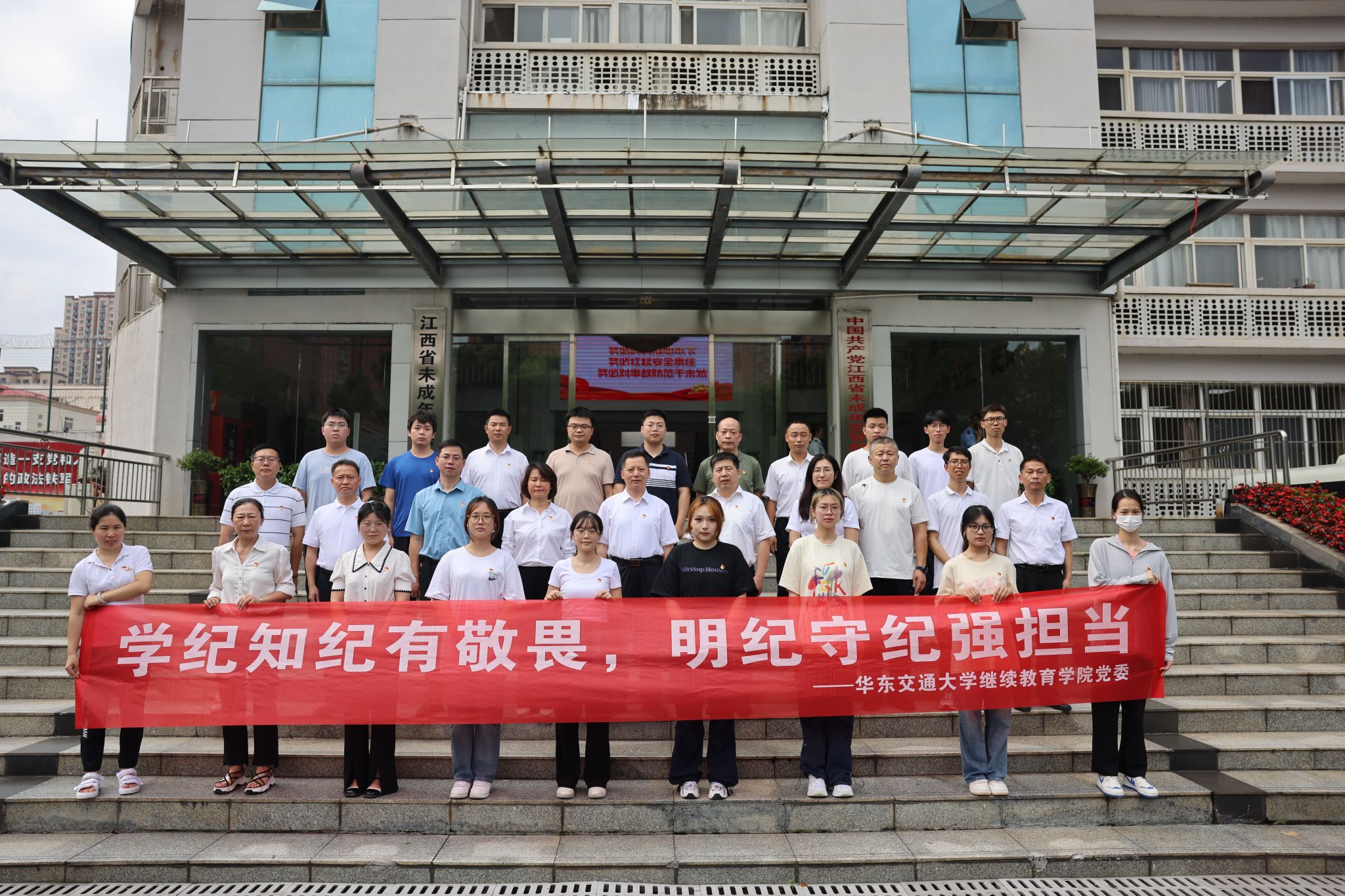 为推进党纪学习教育走深走实、见行见效,引导全体党员受警醒、明底线、知敬畏、强担当,营造风清气正的良好政治生态,6月21日下午,校党委委员、副校长黄志超带领我院师生党员赴江西启明学校(江西省新城监狱)开展“学纪知纪有敬畏,明纪守纪强担当”警示教育主题党日活动,学院党委委员、全体师生党员参加。